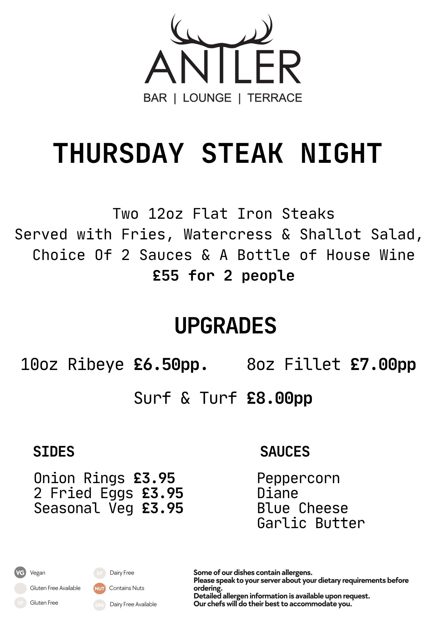 Booking to dine at Antler is advisable, to reserve your table please call 01207 592000 or book online