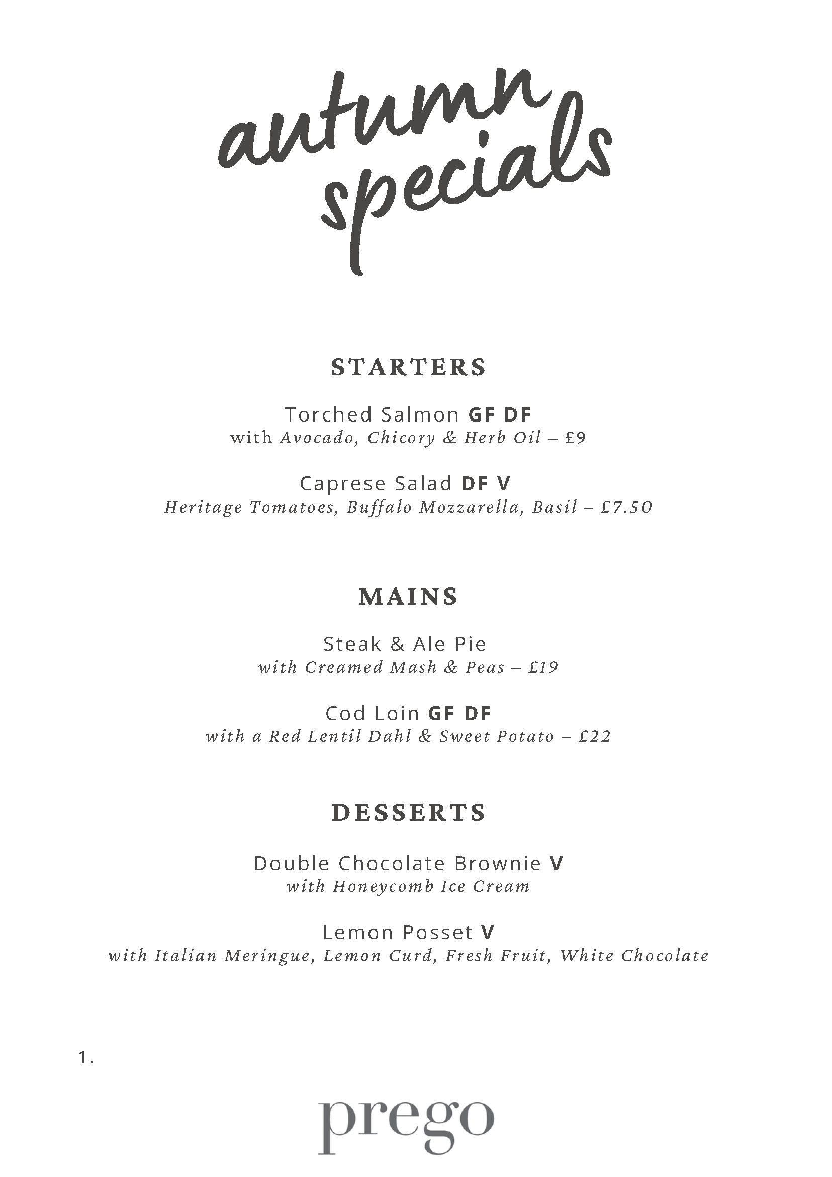 Prego is open for dinner daily from 5.00pm until 9.15pm.